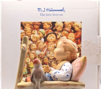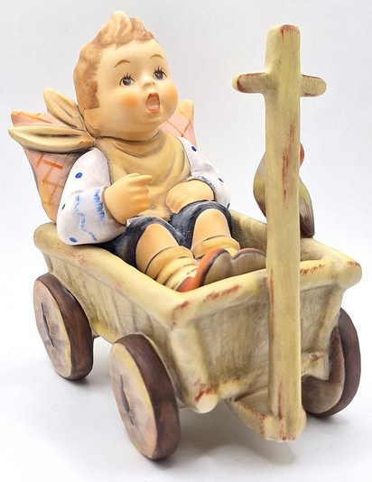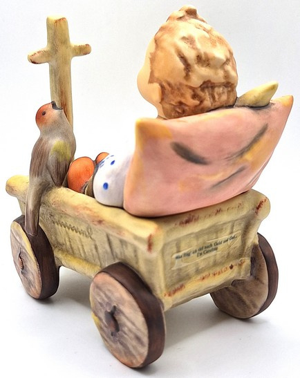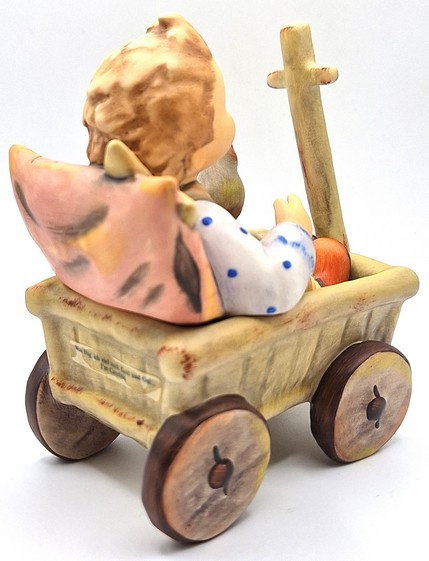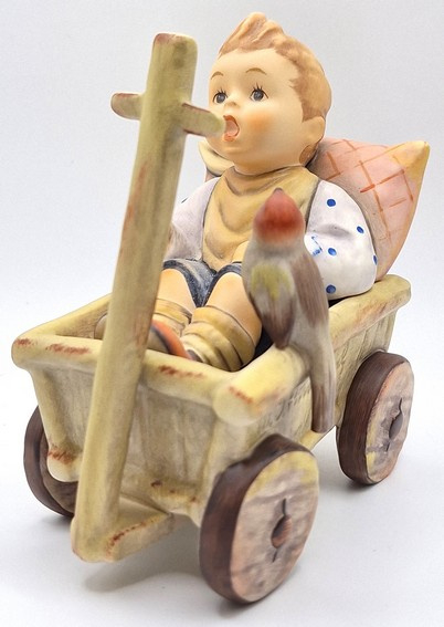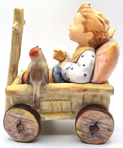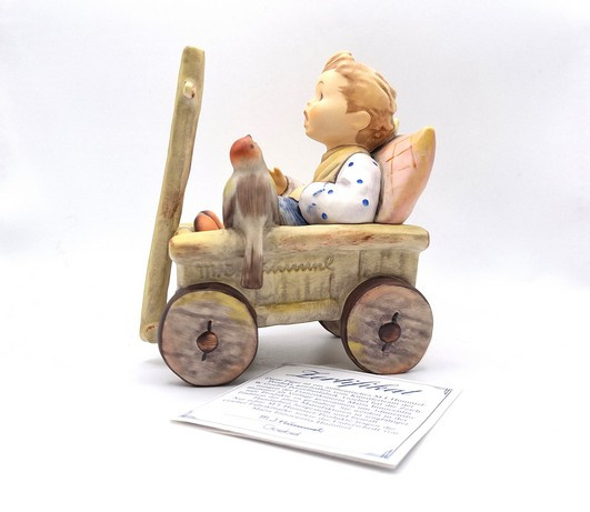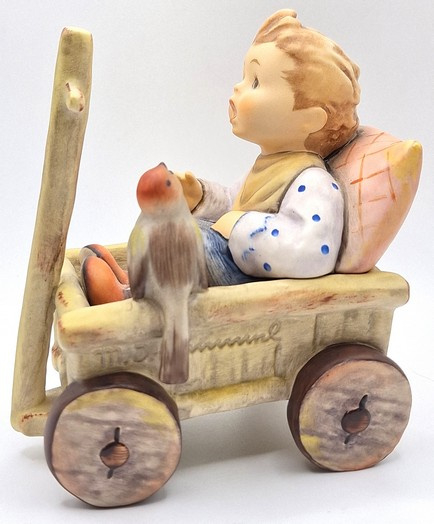 Artikelnummer: A26104Prachtig Hummel beeld van een jongen in een boderkar 633, ook wel 'Was frag ich viel nach geld und Gut...' of 'I'm Carefree' genoemd. De jongen zit in een bolderkar tegen een kussen aan en wordt vergezeld door een vogeltje. Met zijn verfijnde details en zachte, handgeschilderde kleuren betovert dit tijdloze beeldje zowel verzamelaars als kunstliefhebbers. Inclusief de originele doos.