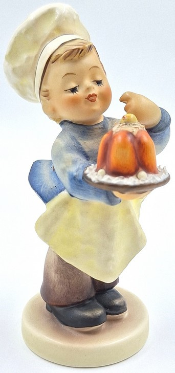 Artikelnummer: A26125Stoer Hummel beeldje van een bakkersjongen. Het hummeltje heeft nummer 128 en wordt ook wel 'Little baker boy' genoemd.
