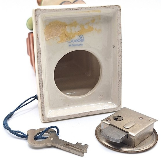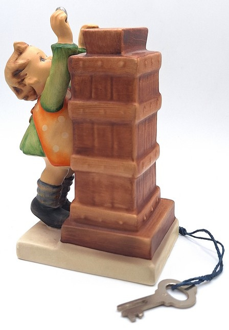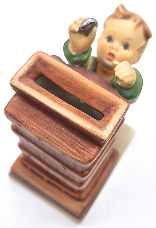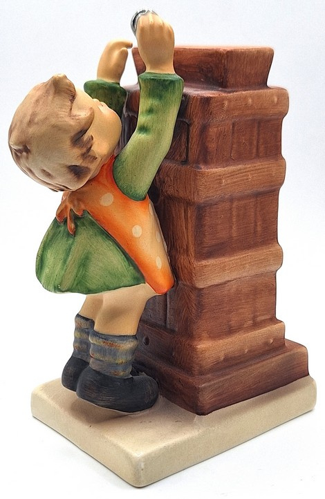 Artikelnummer: A26128Dit Hummel beeldje beeldt een meisje uit dat een muntje probeert te werpen in een schoorsteen. En dat is ook precies de functie van dit beeldje - het is namelijk een spaarpotje! Aan de onderkant kan het beeldje afgesloten worden met een slotje. Het sleuteltje zit er uiteraard ook bij.