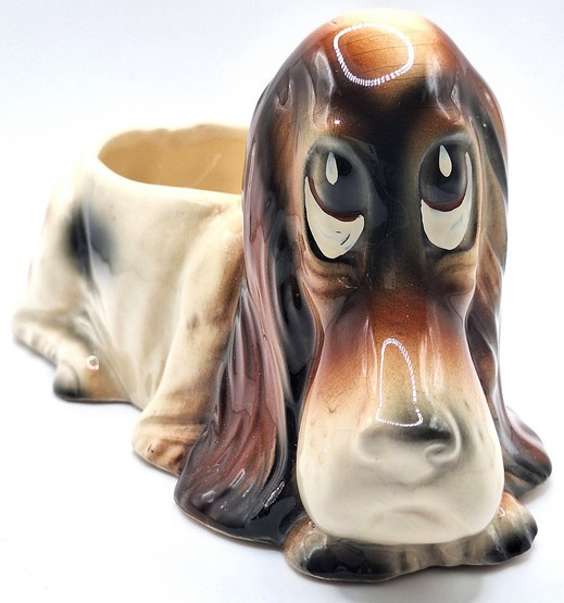 Vintage bloempot Basset Hound