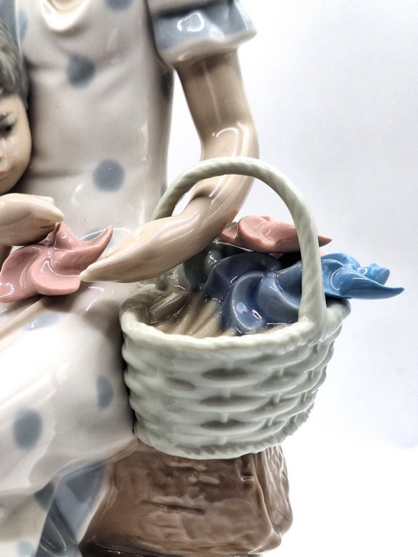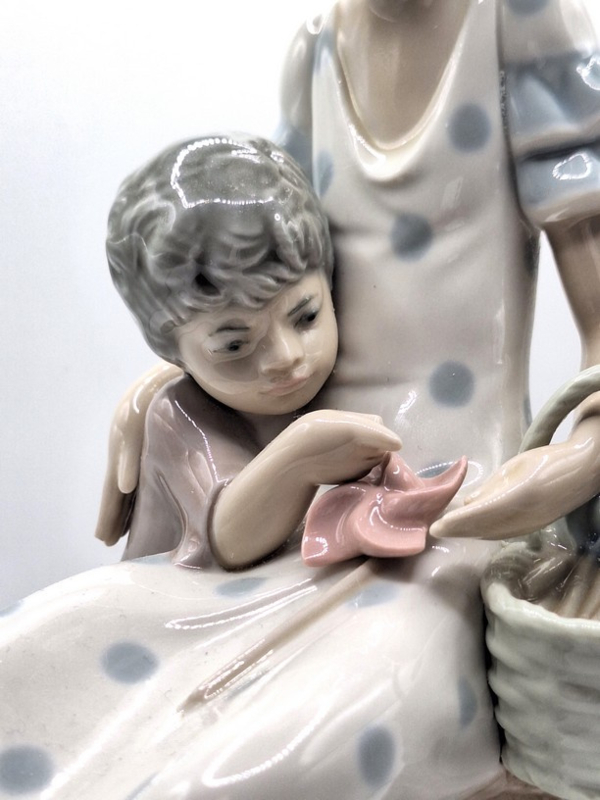 Artikelnummer: P26101Dit prachtige Lladró-beeldje toont een jonge vrouw met een jongetje en windmolentjes in een mandje. Gemaakt in Spanje met een glanzende afwerking, verfijnde details en levendige kleuren. Een geweldige aanwinst voor elke decoratieve collectie, vooral voor diegenen die dit soort beeldjes waarderen.