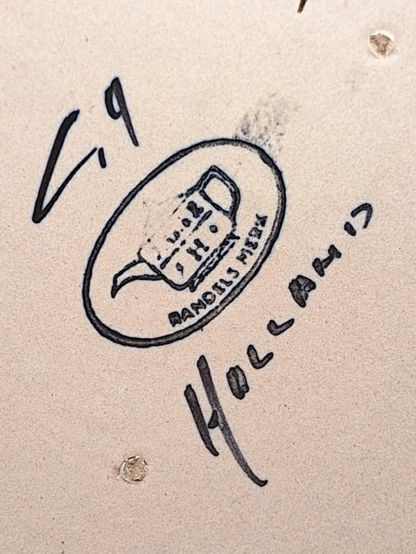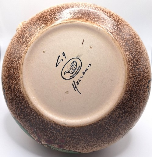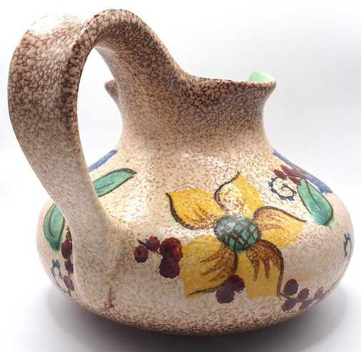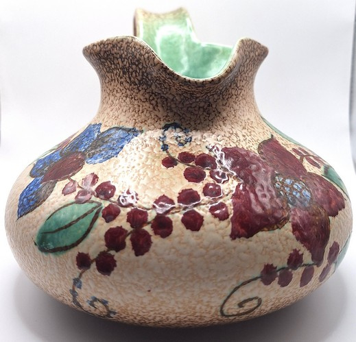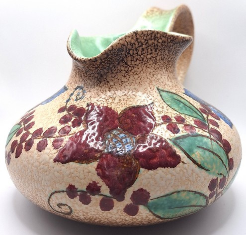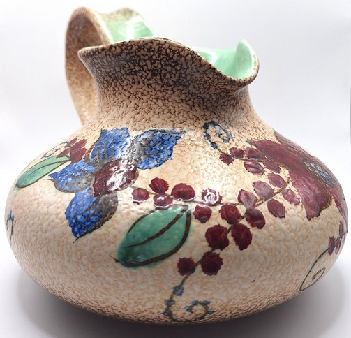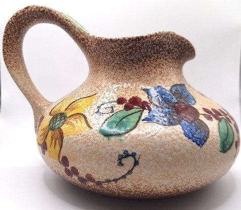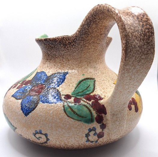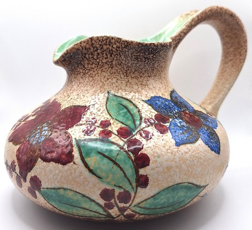 Artikelnummer: A26146Decoratieve snavelkan met kleurrijk bloemmotief. De vaas is aan de onderzijde gemerkt.