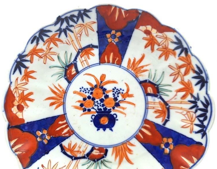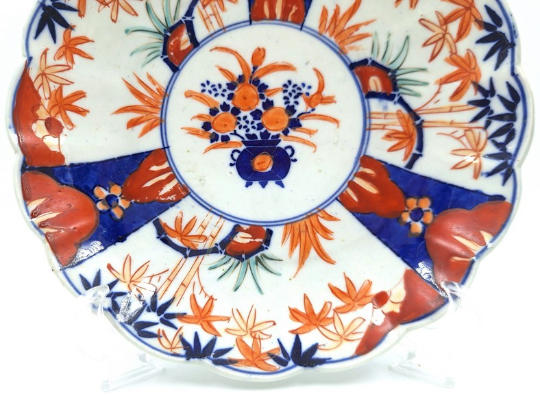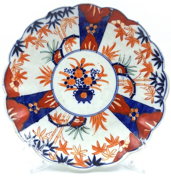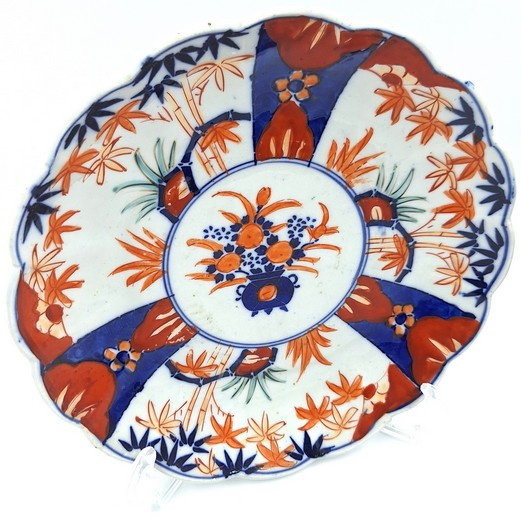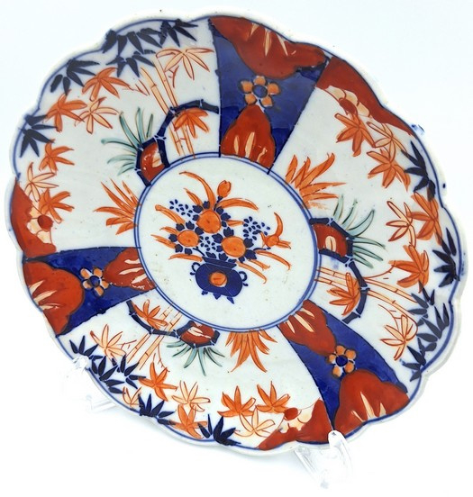 Artikelnummer: C26126Japans imari bord met floraal decor en gelobde rand.