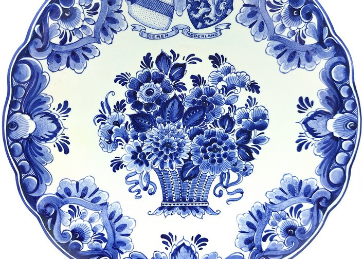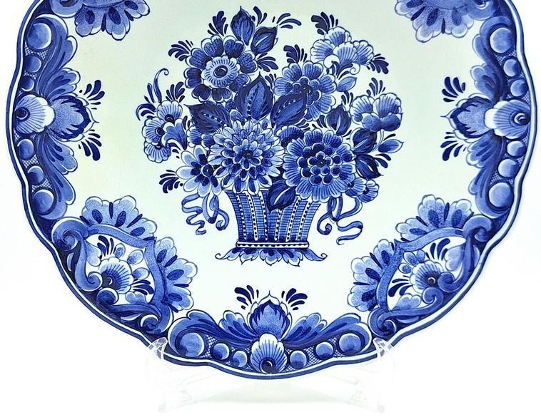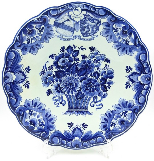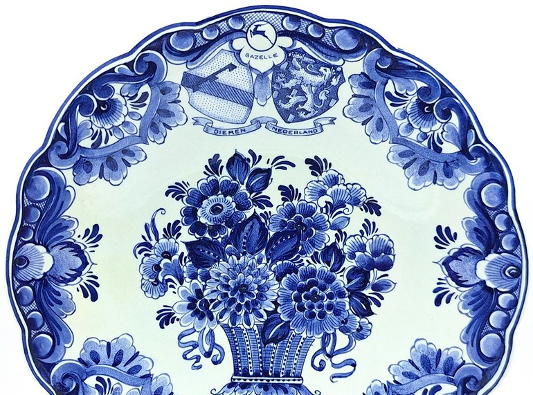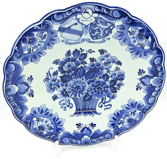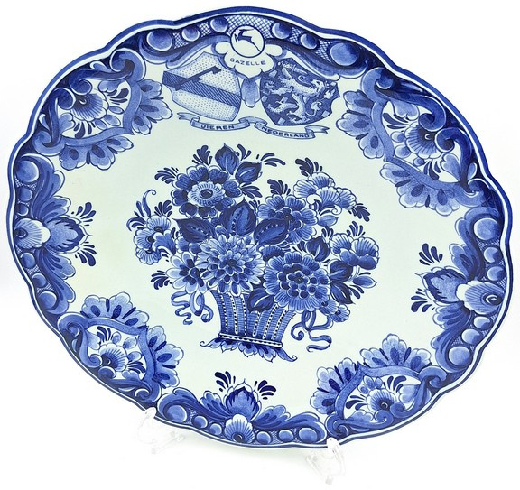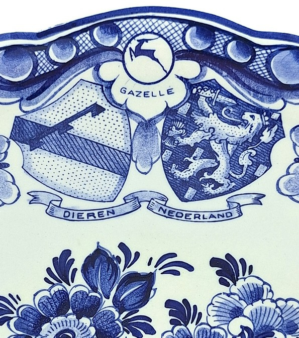 Artikelnummer: A26153Delfts blauw bord met een prachtige florale decoratie ter gelegenheid van de samerking tussen Gazelle en Dieren.