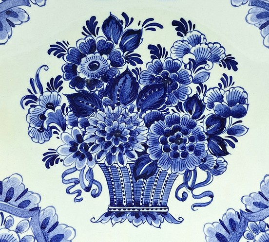 - Kleur: wit geglazuurd met blauwe florale decoratie