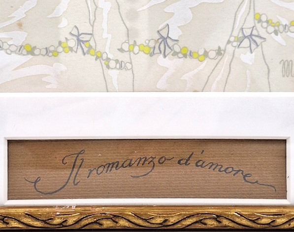 De passe partout is voorzien van een naamplaatje met de titel “Il romanzo d’amore”, letterlijk vertaald als “De liefdesroman” of “Het verhaal van de liefde”, wat de romantische en theatrale sfeer van de voorstelling mooi onderstreept.
