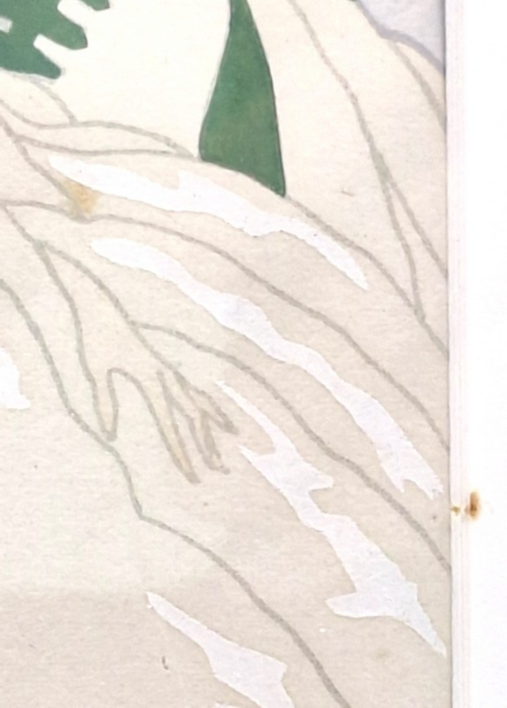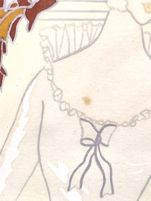 - Bijzonderheden: het werk is vervaardigd volgens de pochoir-techniek (Frans voor ‘sjabloon’), een arbeidsintensieve methode waarbij kleuren met de hand via sjablonen worden aangebracht. Deze techniek stond bekend om zijn heldere kleuren en hoge kwaliteit en werd vooral in Frankrijk toegepast voor luxe prenten en illustraties.