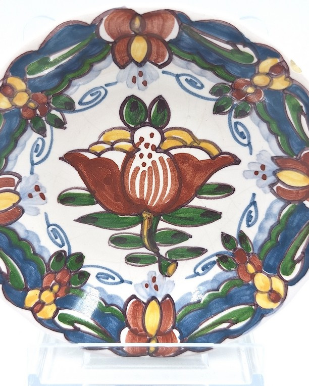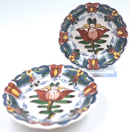 Artikelnummer: A26158Fraaie set van twee Makkum sierbordjes, gemerkt met 'HN'.