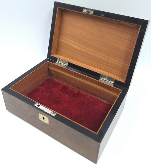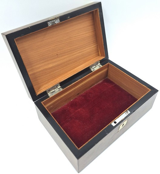 Artikelnummer: O26106Antiek Karlsbad kistje uit Tsjechië, daterend uit het einde van de 19e eeuw. Dit verfijnde kistje is vervaardigd uit palissanderhout, een harde en exclusieve tropische houtsoort (Dalbergia), geliefd om zijn diepe donkerbruine kleur en rijke nerfstructuur.