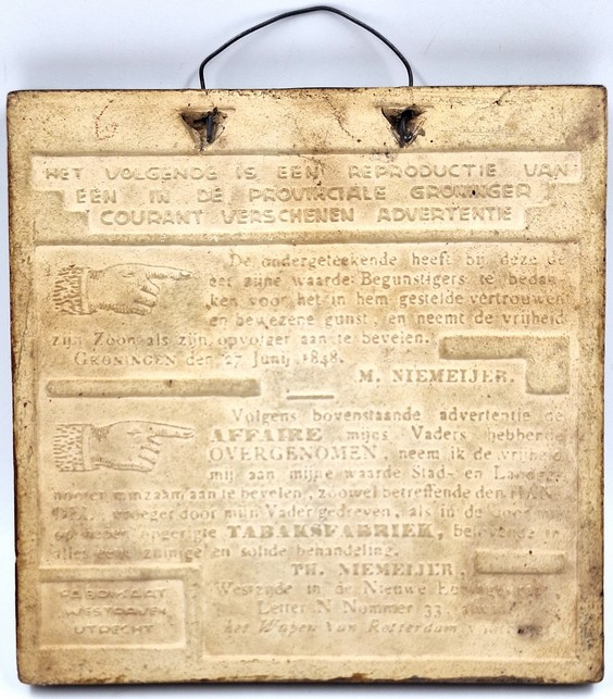 Cloisonné tegeltje tabaksfabriek Niemeijer