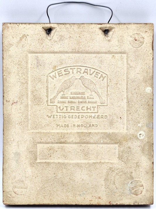 - Bijzonderheden: aan de achterkant is een ijzerdraadje aanwezig, waarmee het tegeltje opgehangen kan worden