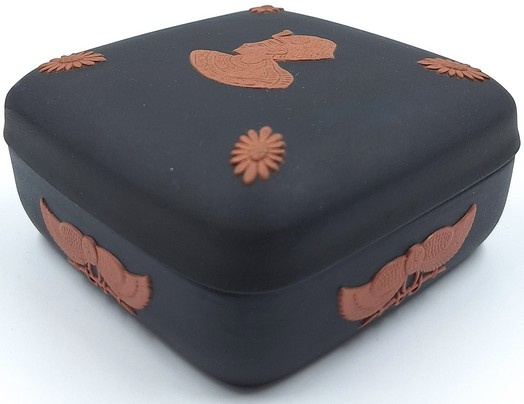 Artikelnummer: A26100Wedgwood sieradendoosje of dekselbakje met een afbeelding van Toetanchamon uit de 'Egyptian Collection' serie. Het bakje is aan alle kanten gedecoreerd en ook de deksel heeft een prachtige decoratie.