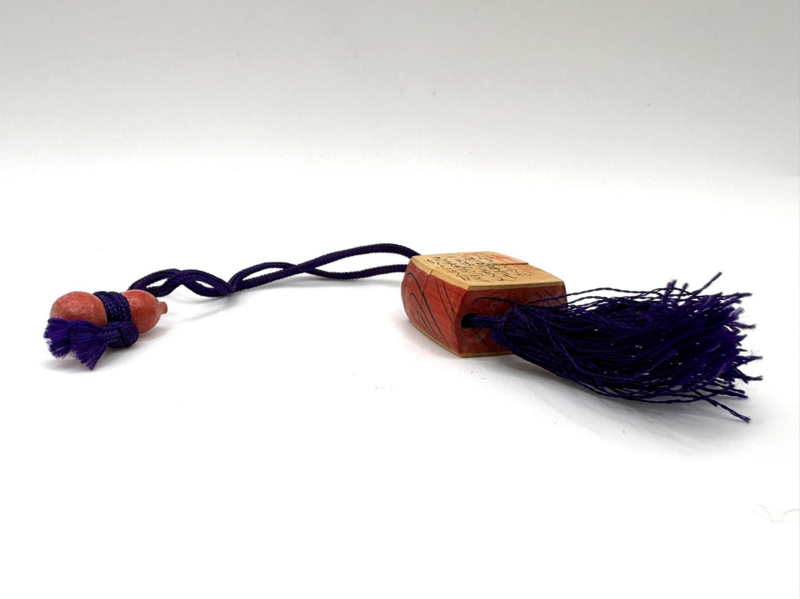 • Bijzonderheden: een inro is een traditioneel Japans etui voor het opbergen van kleine voorwerpen, opgehangen aan de obi die om het middel wordt gedragen bij het dragen van een kimono.