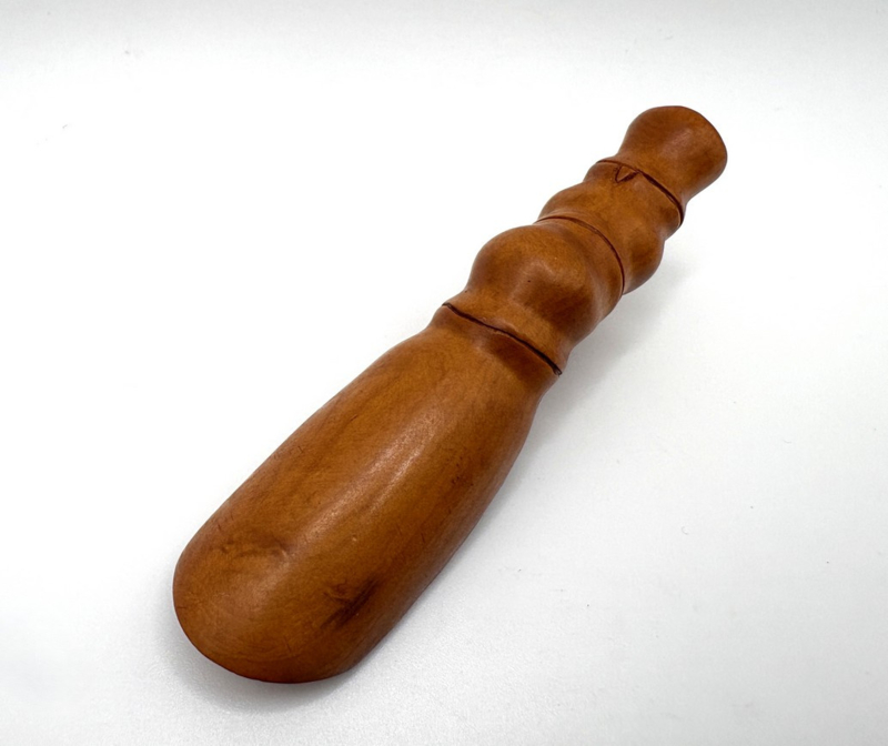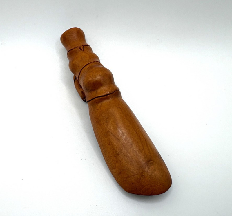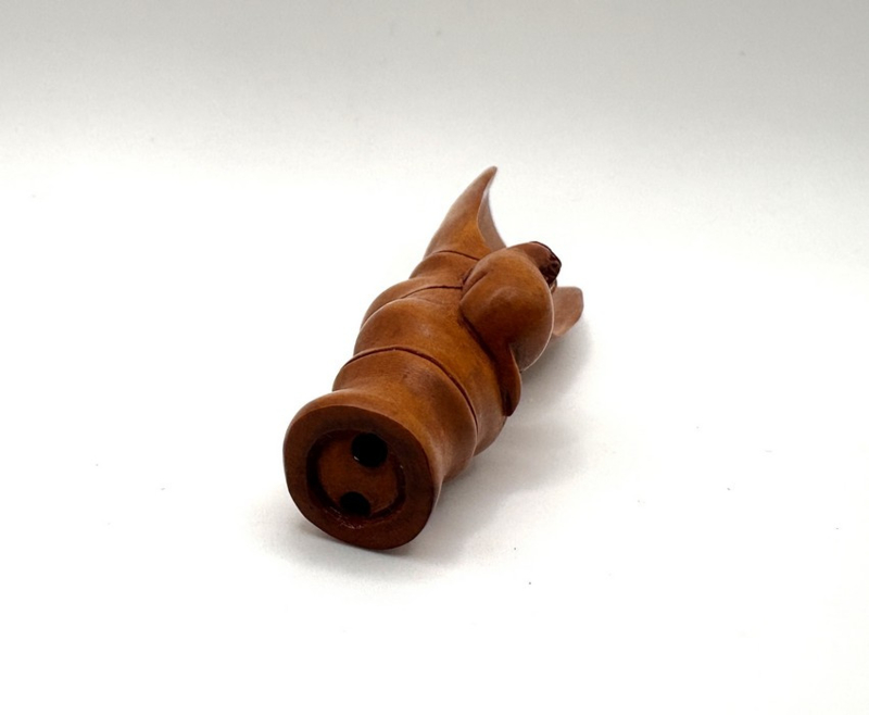 De theeschep kan gebruikt worden als netsuke, middels de 2 gaatjes aan het uiteinde van het handvat.