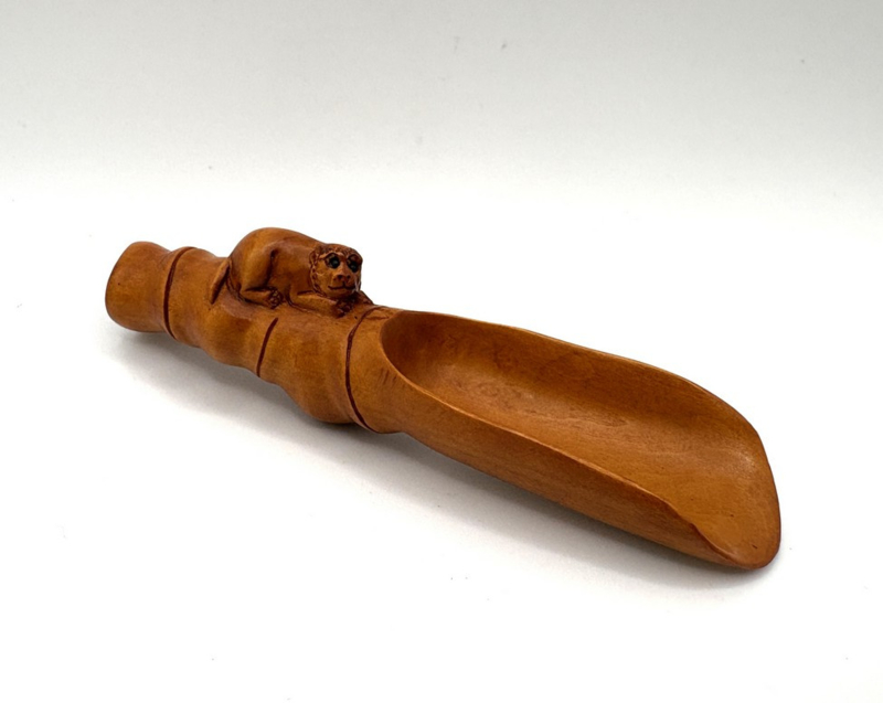 Artikelnummer: C26136Een bijzonder klein kunstwerk - deze Japanse theeschep. De lepel is gemaakt van hout en op het handvat is een prachtige kleine tijger uitgesneden. De oogjes van de tijger zijn ingelegd met onyx.