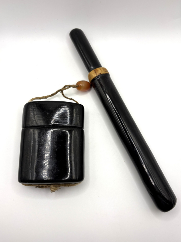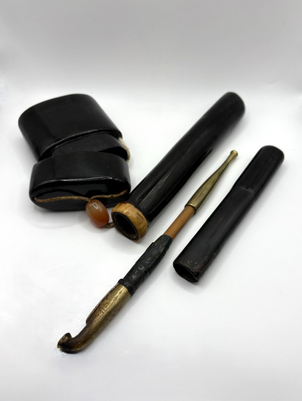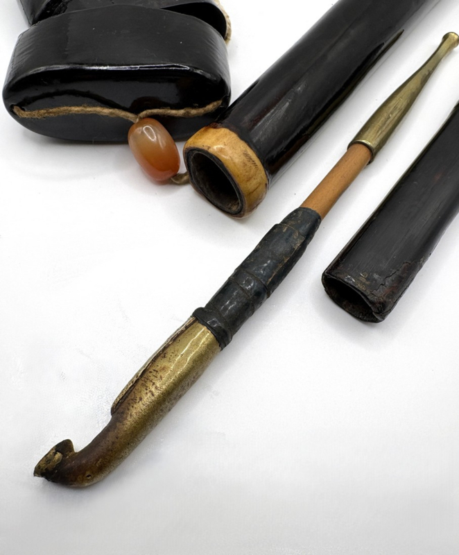 Artikelnummer: C26140De Japanse roker maakt meestal gebruik van een metalen pijp met de naam kiseru. De kiseru wordt in een pijpenhouder bewaard, met een bijpassende tabaksdoos of tabaksetui. Als set zijn zij typerend voor de Japanse rookcultuur.