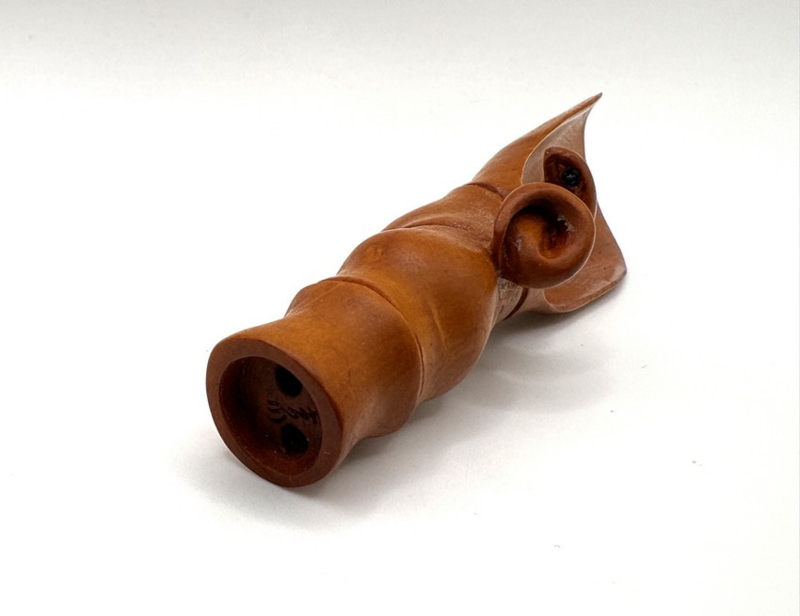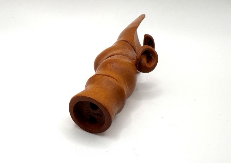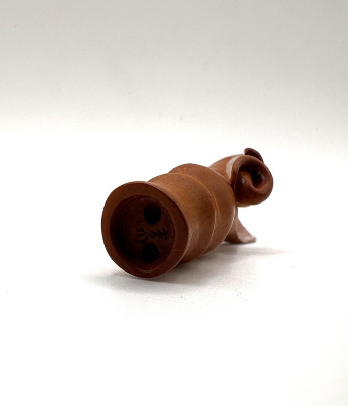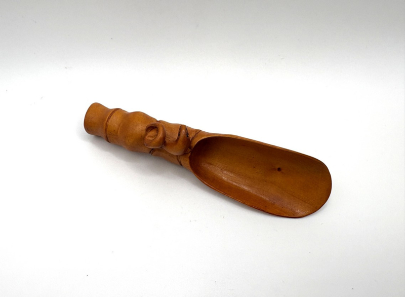 De theeschep kan gebruikt worden als netsuke, middels de 2 gaatjes aan het uiteinde van het handvat. Bij de gaatjes is het theeschepje ook gesigneerd.