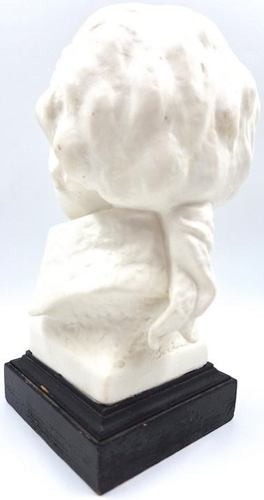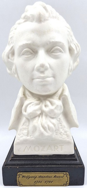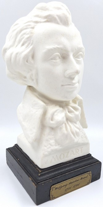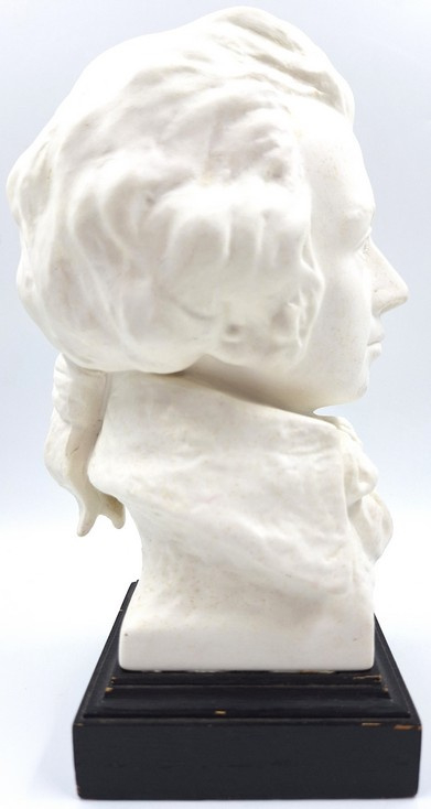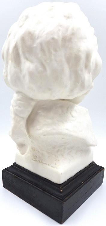 Een fraaie buste van Wolfgang Amadeus Mozart, uitgevoerd met oog voor detail en klassieke elegantie. De buste is gesigneerd door Bochmann en rust op een voet met de plaquette “Wolfgang Amadeus Mozart 1756 - 1791”.
