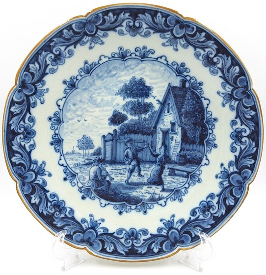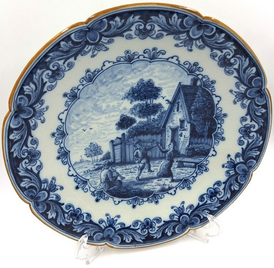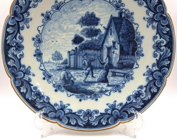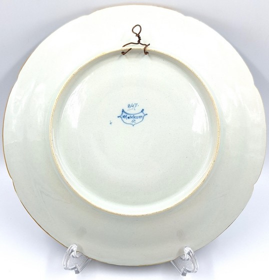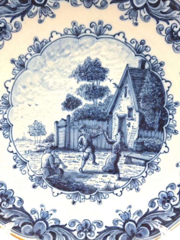 Zeer rijkelijk gedecoreerd Makkum wandbord nummer 847 met dansende mensen.