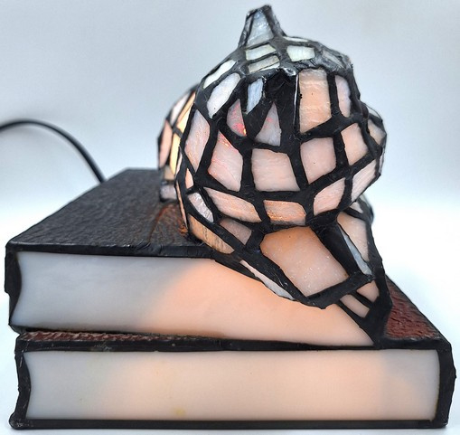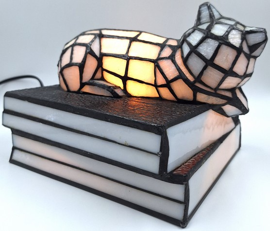 Artikelnummer: L26100Tiffany stijl tafellamp 'Cat on Books'. Kenmerkend met de ingelegde stukjes in verschillende heldere kleuren, is deze Tiffany tafellamp een absolute must-have, niet alleen voor kattenliefhebbers.