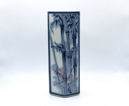 Artikelnummer: C21125Chinees porseleinen vaasje met blauw / wit decor van bamboe. Door zijn eenvoud en vorm een ware blikvanger.
